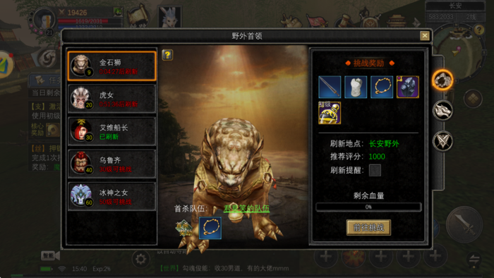 还有这个拍卖行啊大家可以在里面任意的拍卖商品,可买可拍后面随着等级的提升也是会有野外挑战、统领挑战、副本挑战等玩法都是一比一复刻端游的,随着等级的提升也是会解锁新的玩法的,新版本的话后面肯定也会出更多的玩法的,大家敬请期待一下。
